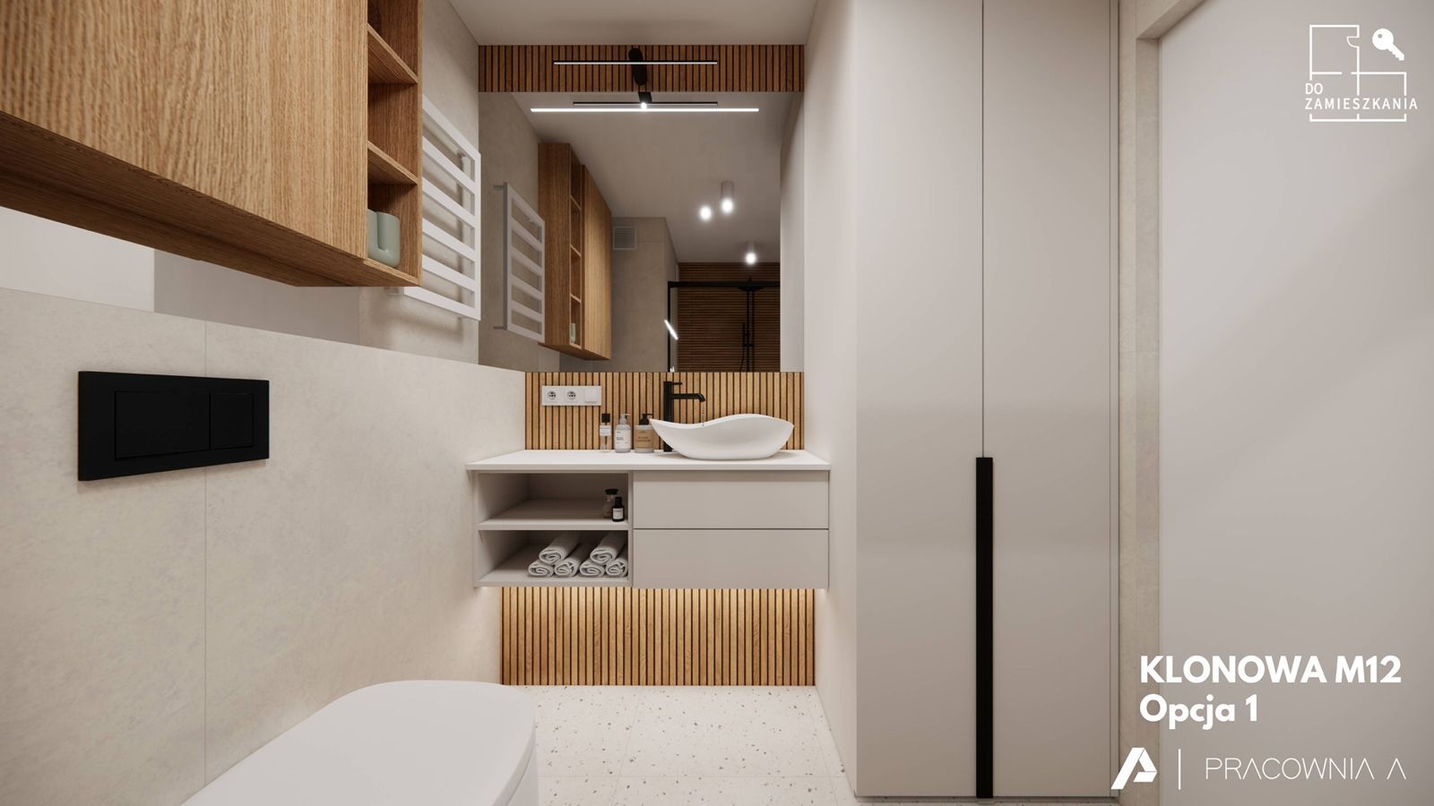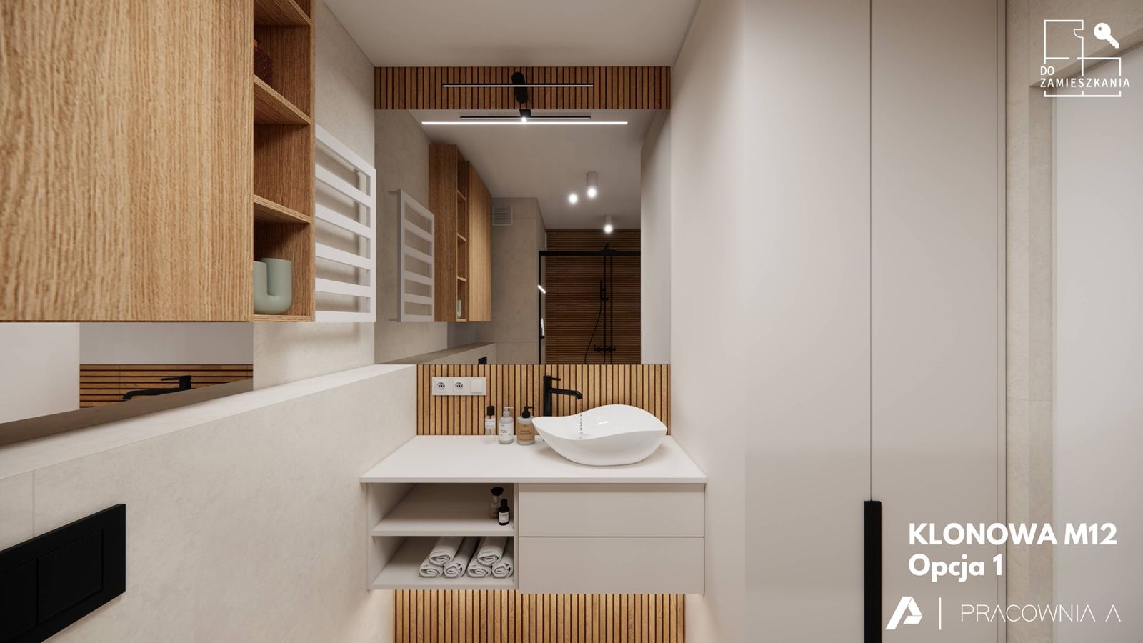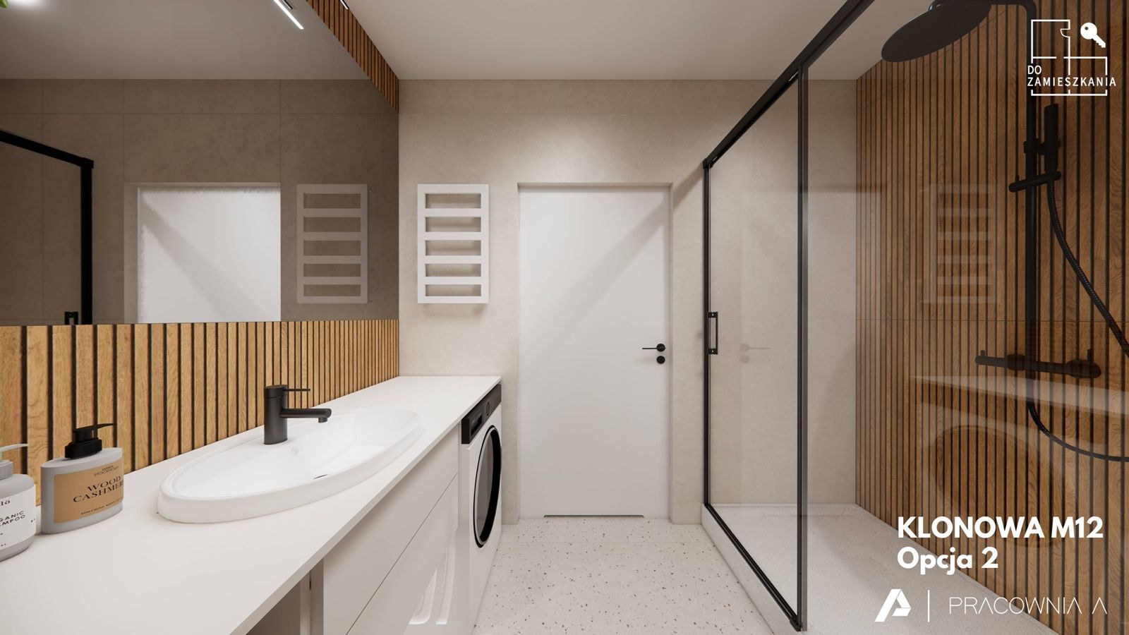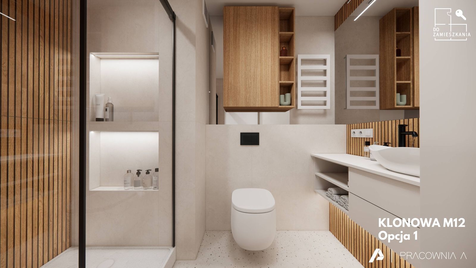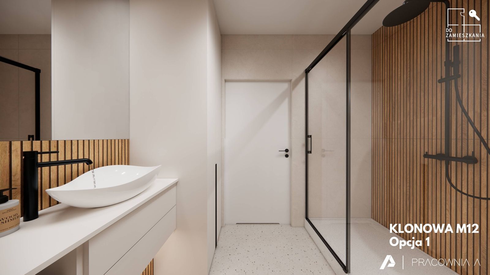 - Łazienka: Szafka, umywalka, toaleta, prysznic