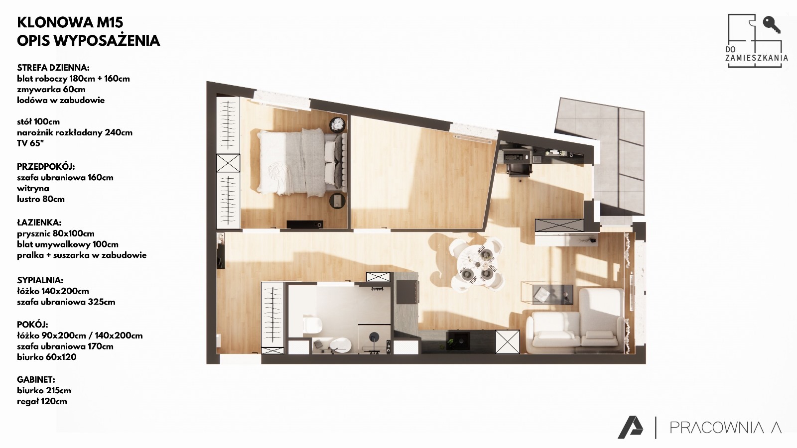 Mieszkanie zlokalizowane jest na 3 piętrze nowego, czteropiętrowego budynku. Wnętrze zostało zaprojektowane z myślą o komforcie i funkcjonalności, z pełnym wyposażeniem kluczowych stref. W cenie mieszkania znajdują się: