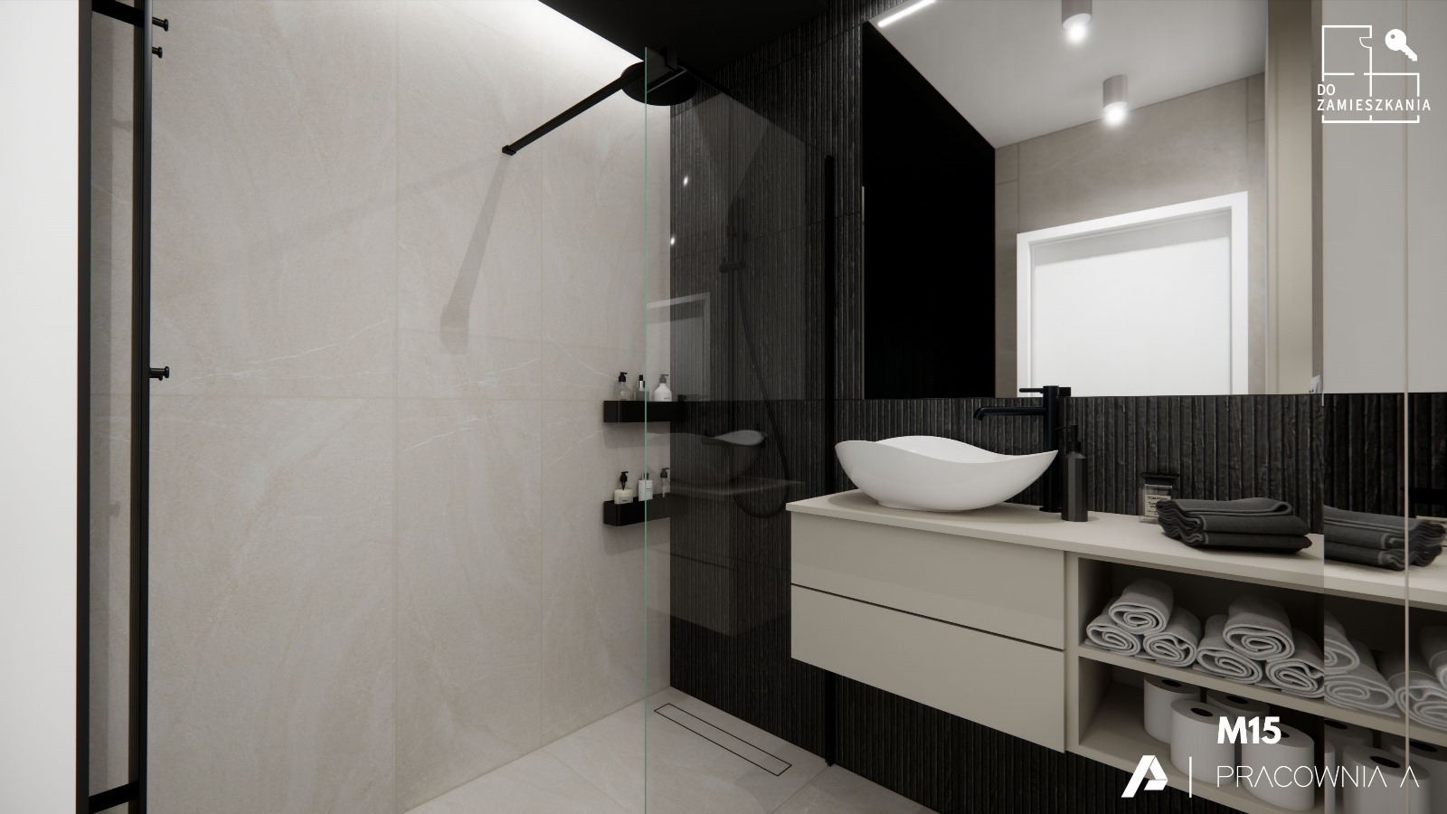 - Sypialnia: Ogromna szafa na wymiar, ledy, lustra, tynk ozdobny