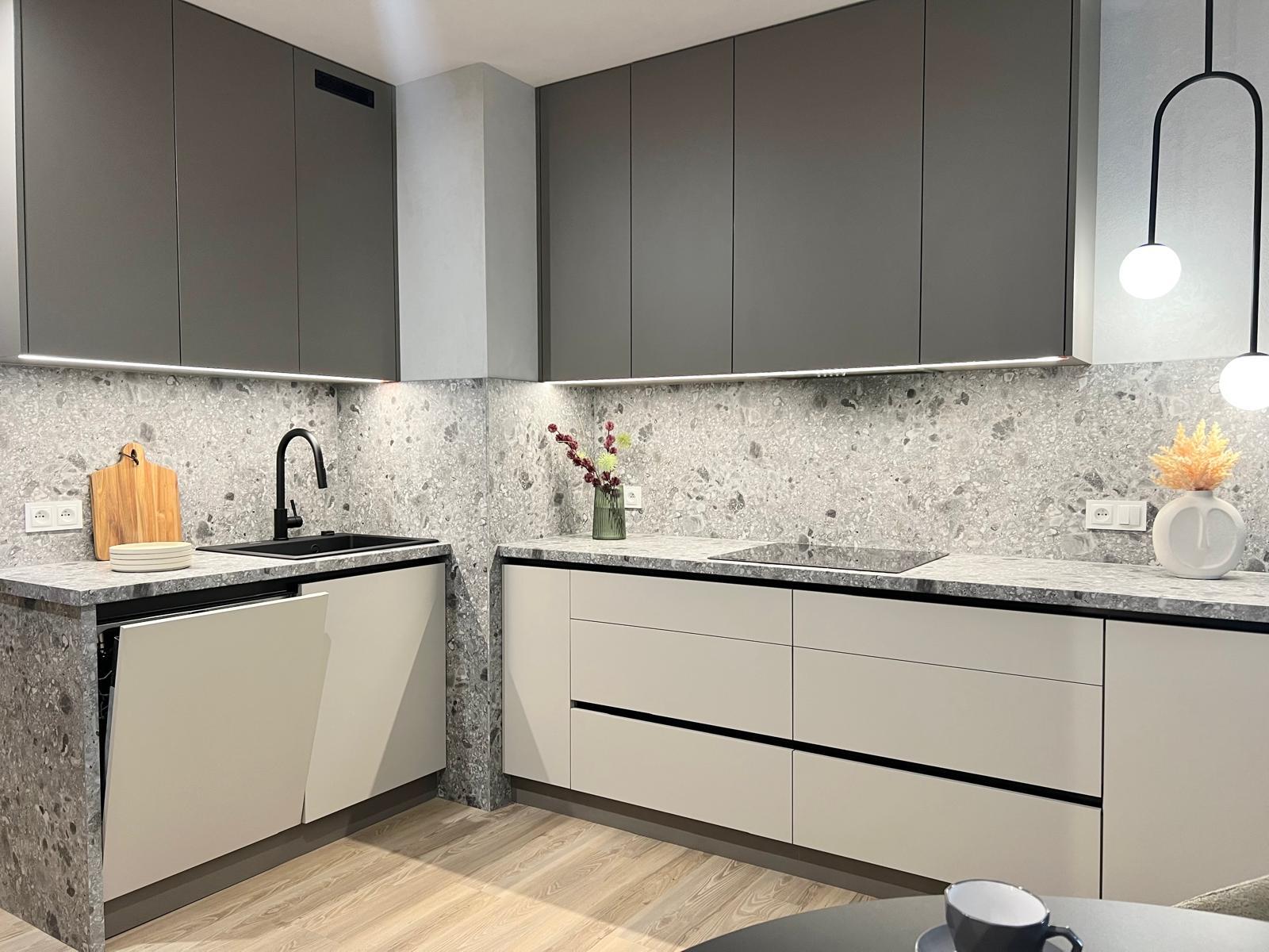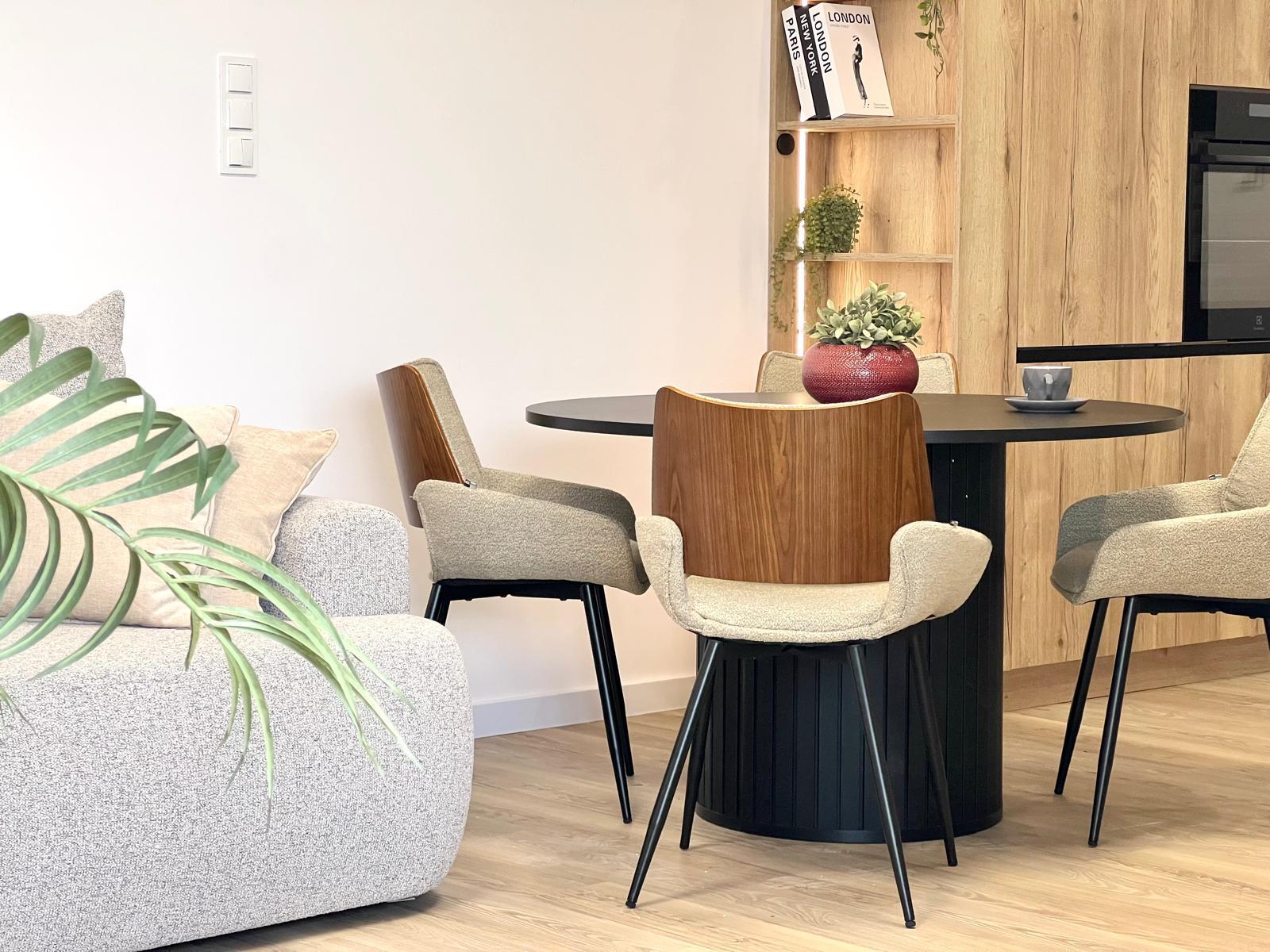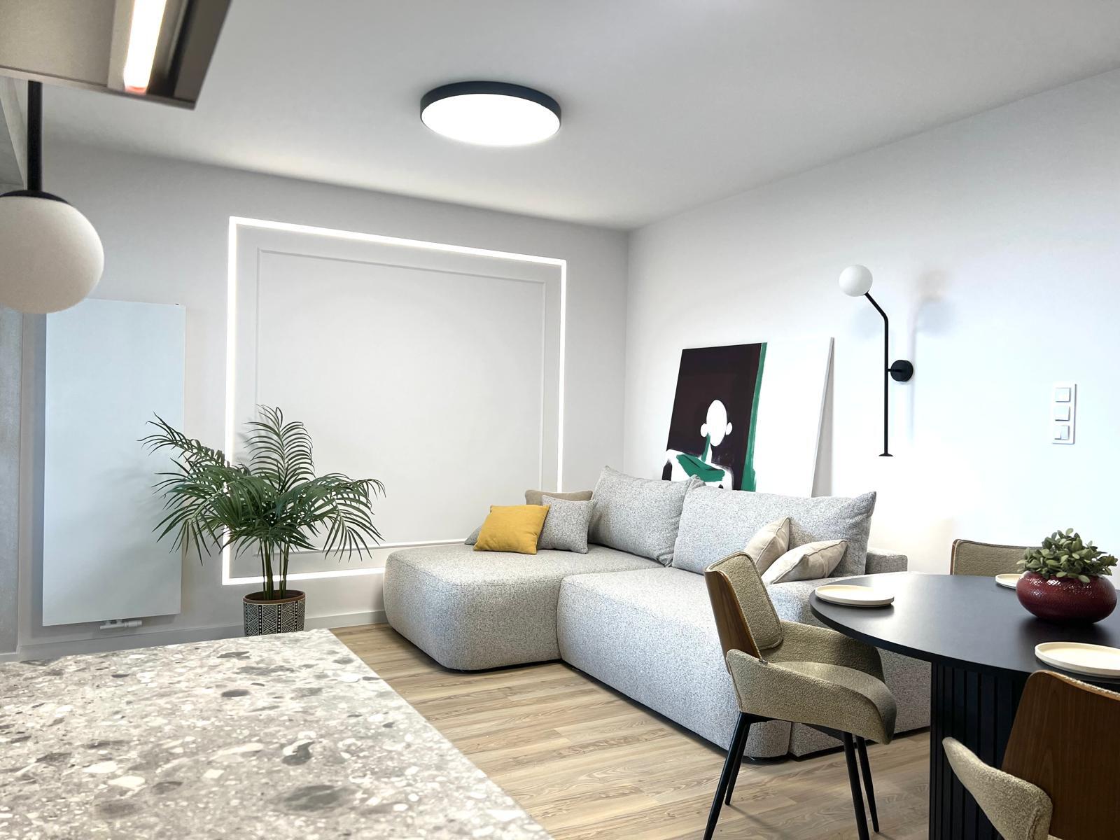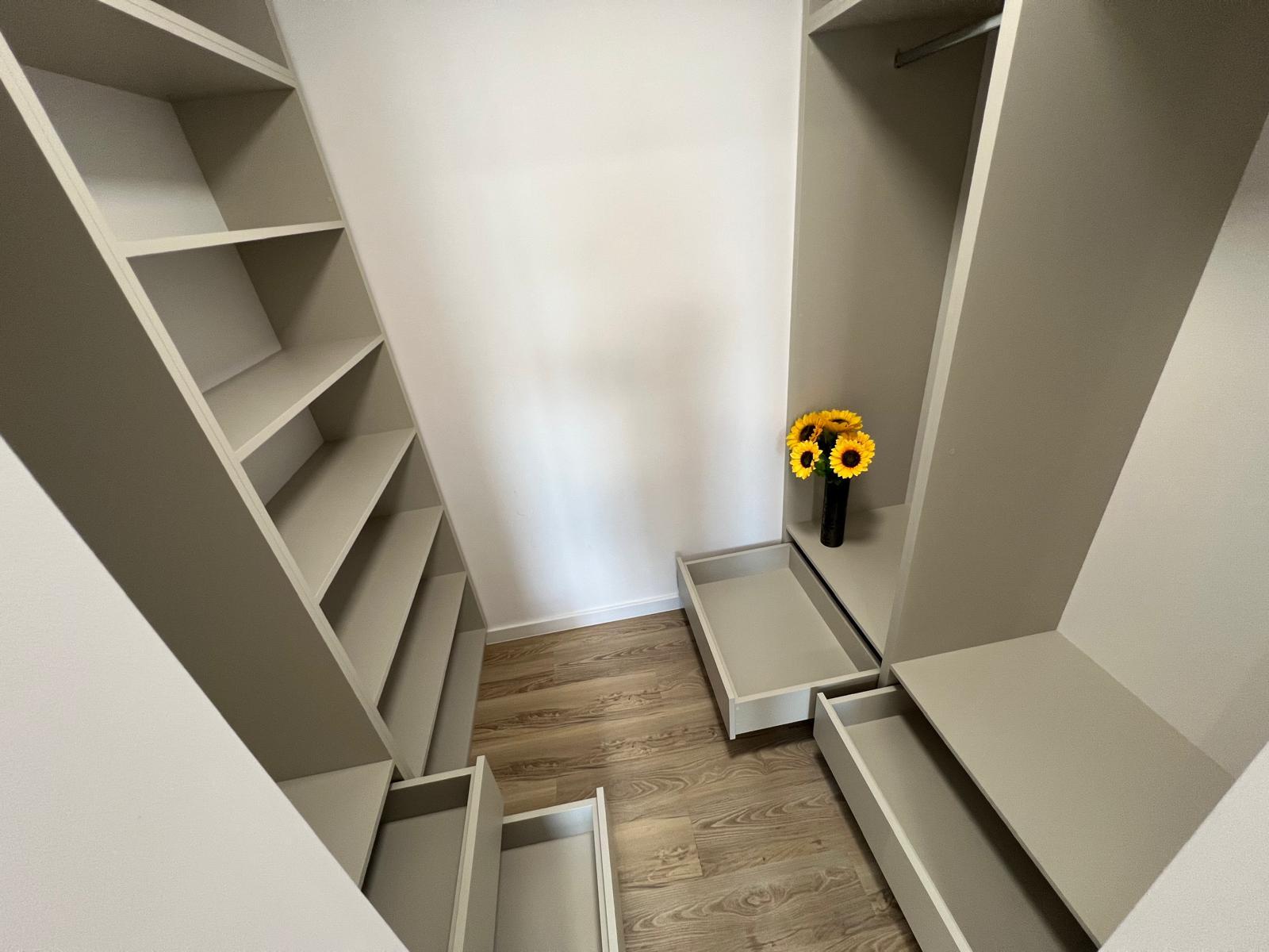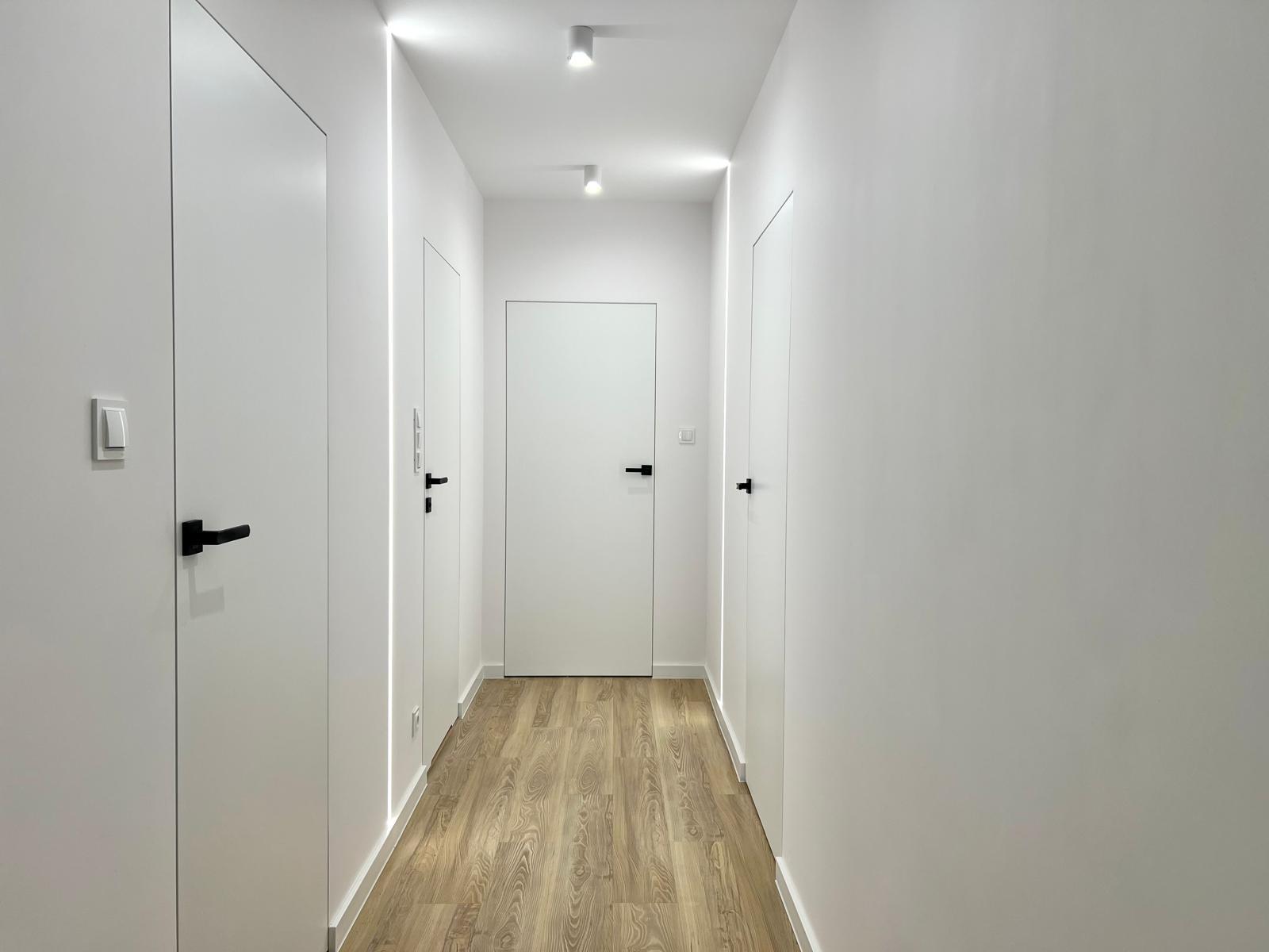 Mieszkanie zostało wykończone przy użyciu wysokiej jakości materiałów, z dbałością o detale. Ściany są pokryte plamoodporną farbą, a na podłodze znajdują się francuskie panele winylowe GERFLOAR. Ponadto, mieszkanie jest wyposażone w dekoracyjne lustra oraz oświetlenie, które dodaje uroku każdemu pomieszczeniu.